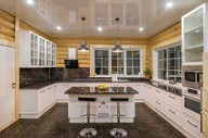 Частный дом даёт гораздо больше возможностей для планировки кухни, чем квартира: воду, канализацию и вентиляцию можно провести практически в любую точку помещения. Например, можно разместить мойку или варочную панель в кухонном острове. В таком случае подвод и отвод воды или вытяжку можно провести через пол.