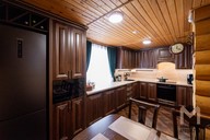 В загородных домах кухня часто становится главным пространством для общения семьи и гостей. Здесь проводят много времени, поэтому важно продумать не только функциональность, но и атмосферу уюта. В интерьерах загородных домов часто используются натуральные материалы, и многие выбирают фасады из массива дерева — они поддерживают естественную эстетику деревянного дома.