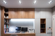 У нас получился кабинет, в котором хочется работать. Все находится на расстоянии вытянутой руки, провода и техника не мешают, а цветовая гамма настраивает на спокойный, деловой лад.