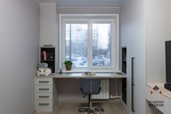 Сердце комнаты — просторное рабочее место, выстроенное вдоль всего окна. Это самое светлое место в комнате, идеальное для учебы. Ее особенности: