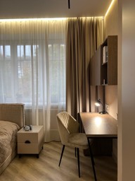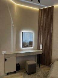 Спальня получилась спокойной, продуманной и уютной за счёт сочетания теплых нейтральных тонов, древесной текстуры и мягкого света. Мебель сделана на заказ, поэтому каждый элемент точно попал в размеры и поддержал общий ритм интерьера — от рабочей зоны до туалетного столика.
