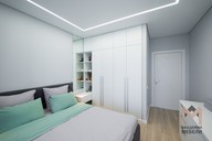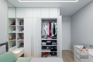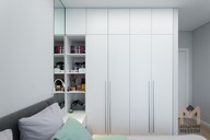 В новом проекте – абсолютно светлая и просторная спальня, оформленная в минималистичном стиле. Мебель создана из материала Egger «Белый премиум»: и корпус, и фасады поддерживают чистый, ровный цвет без лишних оттенков.