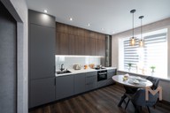 В этом проекте стиль и четкость сплелись в единую концепцию современной городской эстетики. Ее основа - сочетание двух оттенков: матого серого «Musson» и фактурного «Синхропоры Калабрия». Такая комбинация придаёт дополнительную глубину текстуре и усиливает характер интерьера.