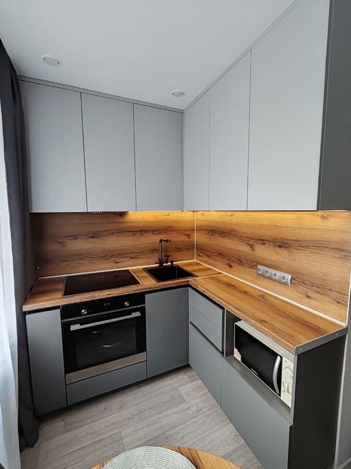 "Невозможное - возможно", так можно сказать о моей кухне- крохе. Благодаря работе команды мастеров своего дела:дизайнеру Екатерине и сборщикам Денису и Евгению, моя мечта стала реальностью . Спасибо за ценные советы, внимание к моим желаниям и качественную работу.